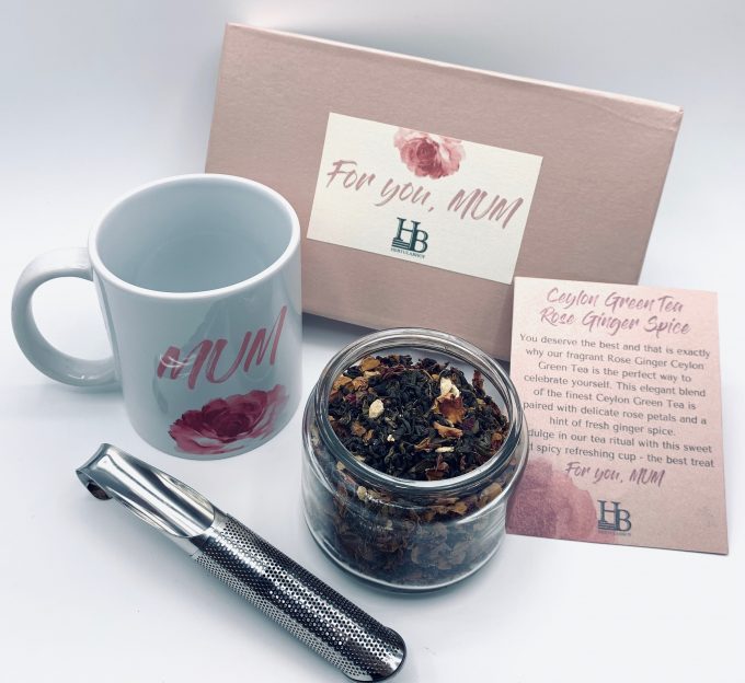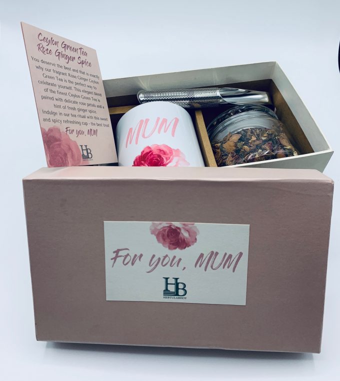 FestiviTeaGift your Mum our handcrafted total tea box and let her taste the roses! This elegant blend of the finest Ceylon Green Tea is paired with delicate rose petals and a hint of fresh ginger spice.